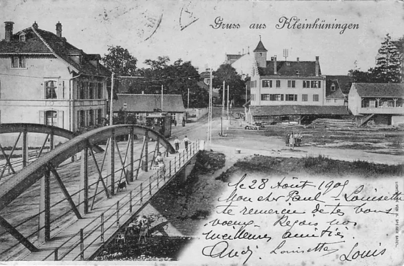 Im Jahr 1900 war Kleinhüningen ein idyllisches Dorf am Rheinufer im Norden von Basel, geprägt von kleinen Bauernhöfen, Handwerksbetrieben und Fischern, die vom Fluss lebten. Die engen Gassen mit Fachwerkhäusern und die Nähe zum Hafen machten es zu einem lebendigen Handelsort, während die Industrialisierung langsam Einzug hielt.